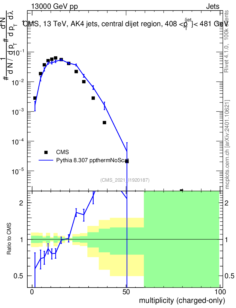 Lines: data, pythia8 8.307 ppthermNoScat |