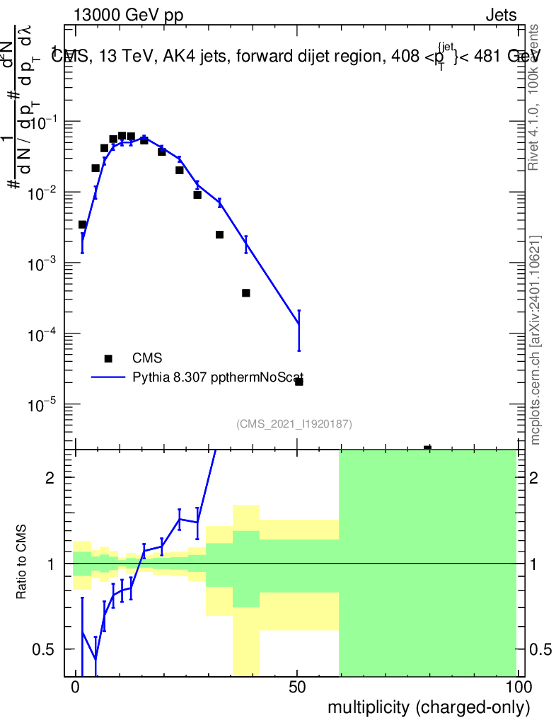 Lines: data, pythia8 8.307 ppthermNoScat |