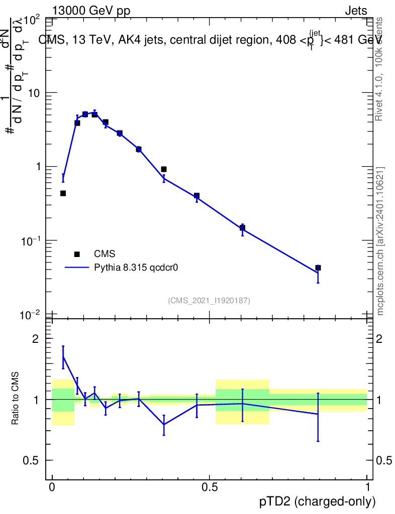 Lines: data, pythia8 8.315 qcdcr0 |