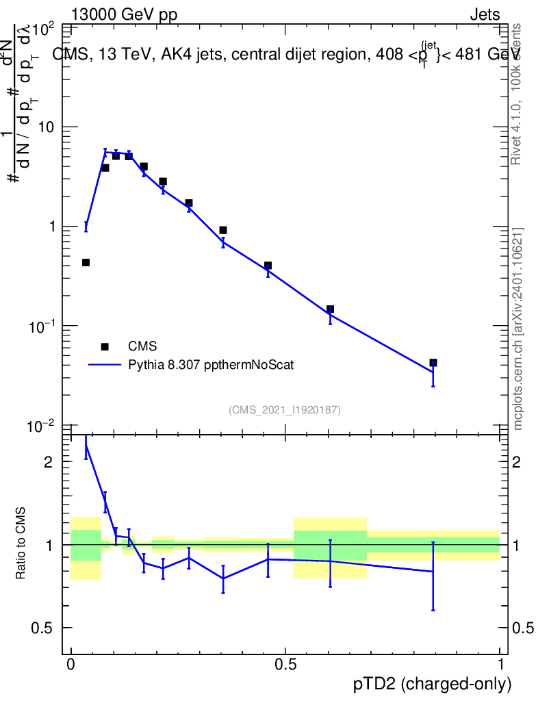 Lines: data, pythia8 8.307 ppthermNoScat |