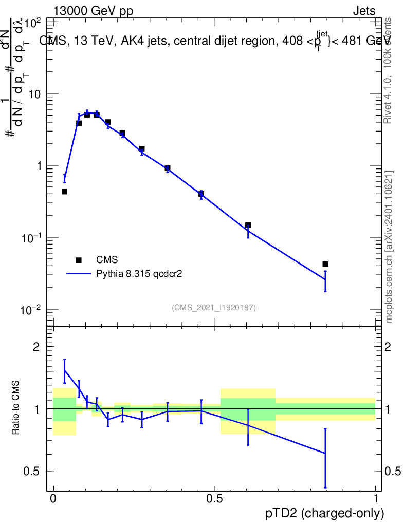 Lines: data, pythia8 8.315 qcdcr2 |