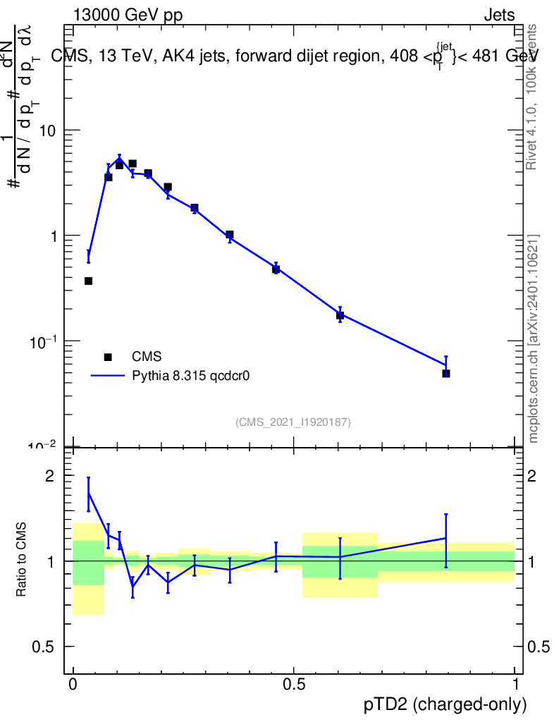 Lines: data, pythia8 8.315 qcdcr0 |