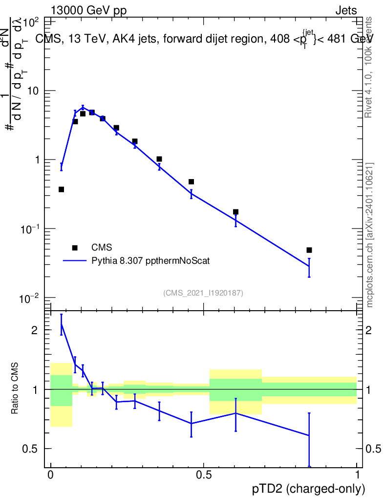 Lines: data, pythia8 8.307 ppthermNoScat |