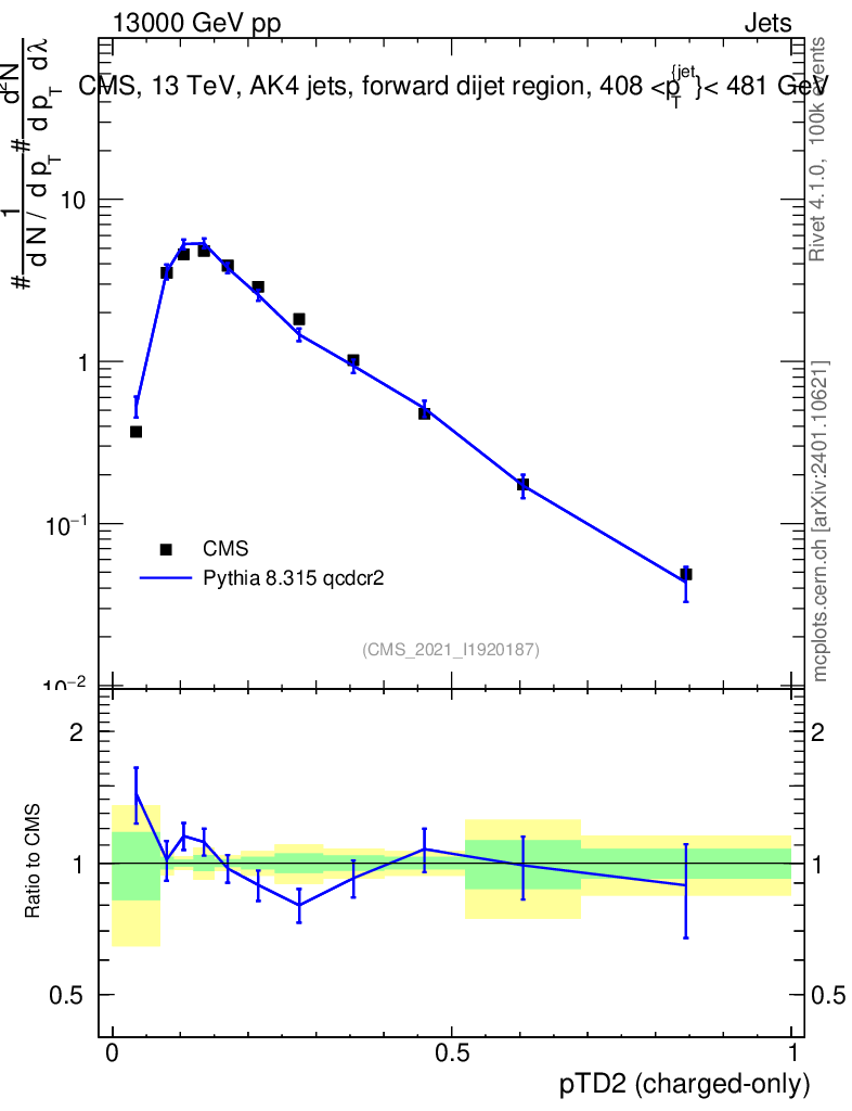 Lines: data, pythia8 8.315 qcdcr2 |