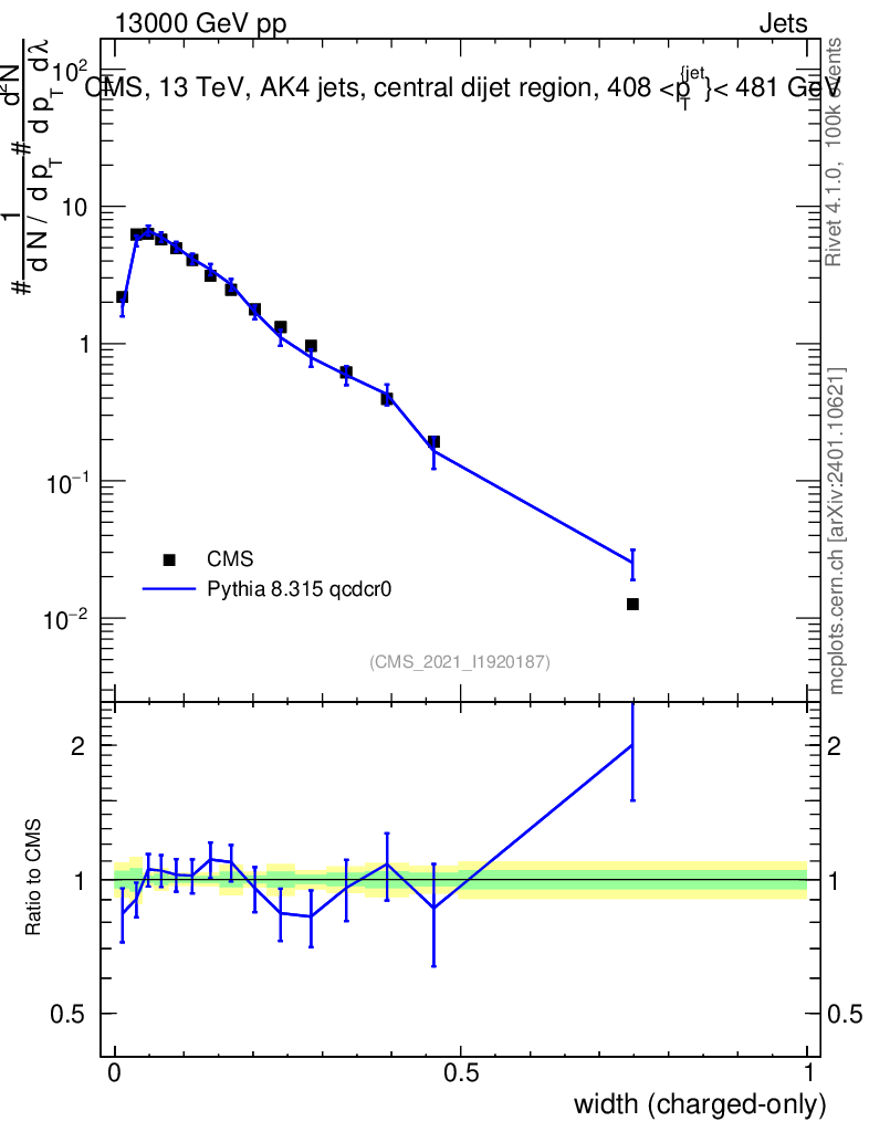 Lines: data, pythia8 8.315 qcdcr0 |