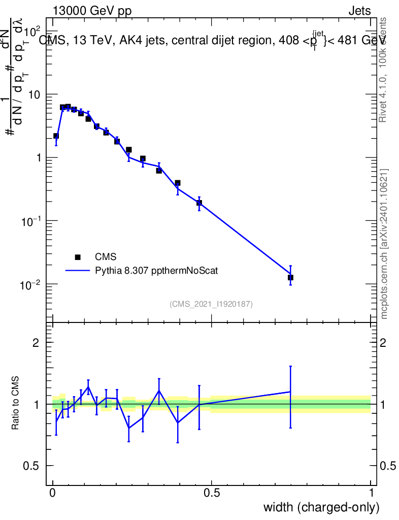 Lines: data, pythia8 8.307 ppthermNoScat |