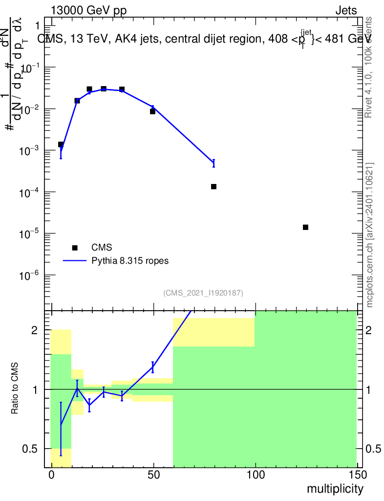 Lines: data, pythia8 8.315 ropes |