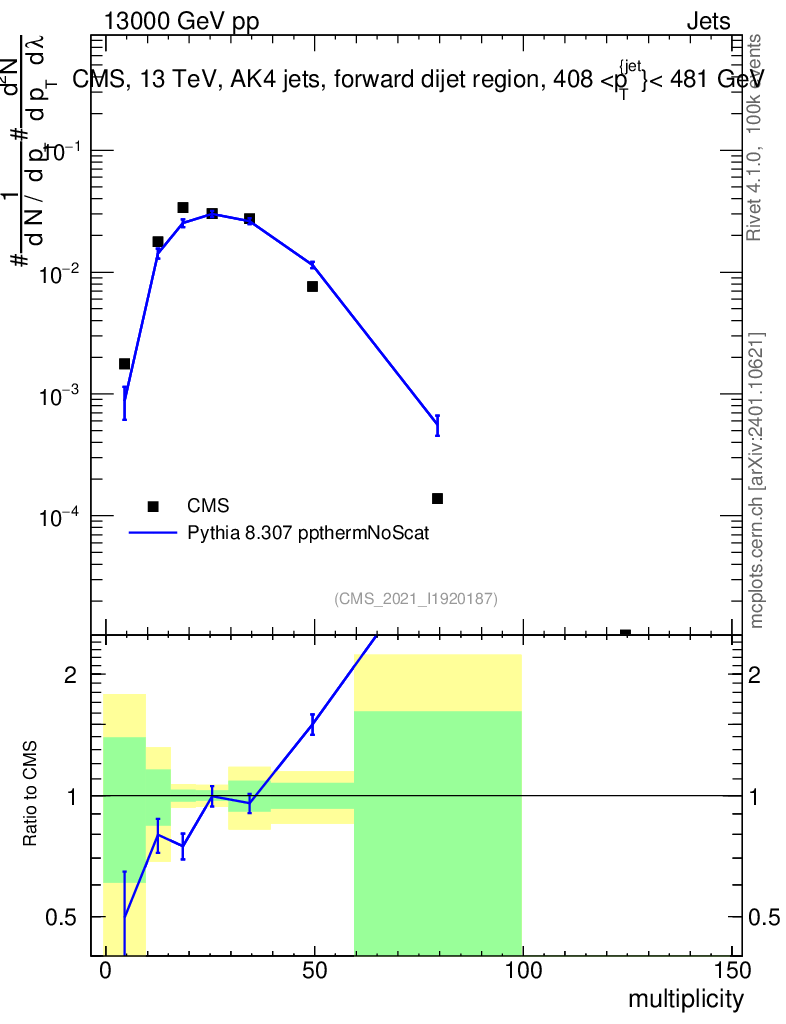 Lines: data, pythia8 8.307 ppthermNoScat |
