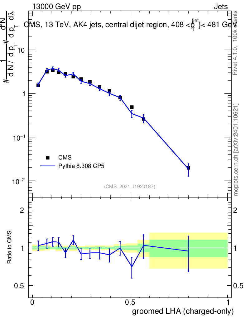 Lines: data, pythia8 8.308 CP5 |
