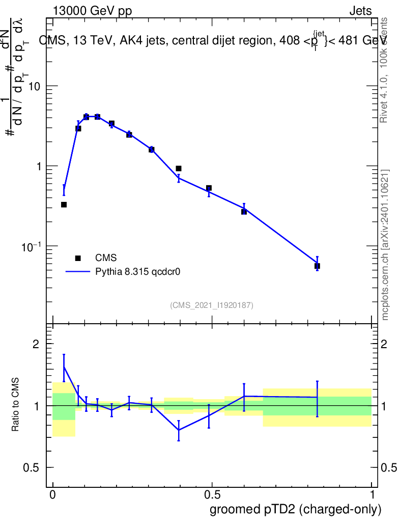 Lines: data, pythia8 8.315 qcdcr0 |