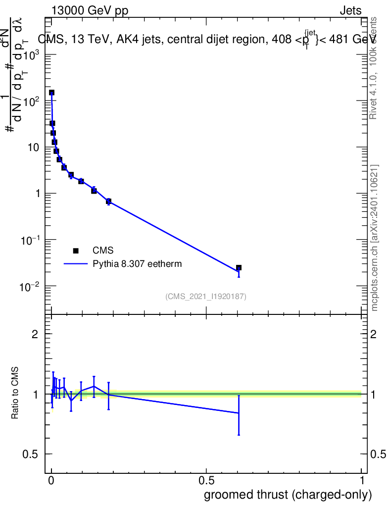 Lines: data, pythia8 8.307 eetherm |