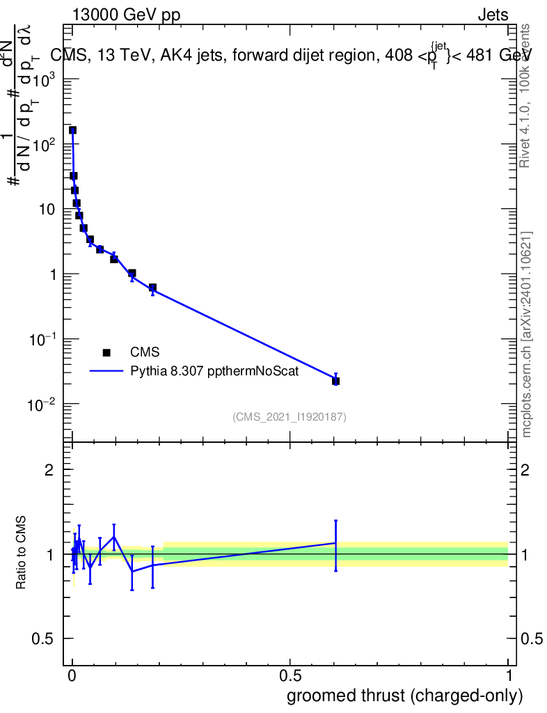 Lines: data, pythia8 8.307 ppthermNoScat |