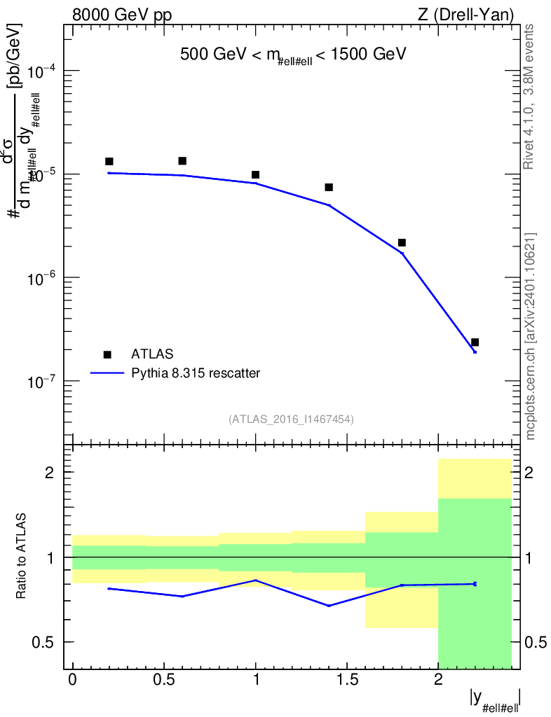 Lines: data, pythia8 8.315 rescatter |