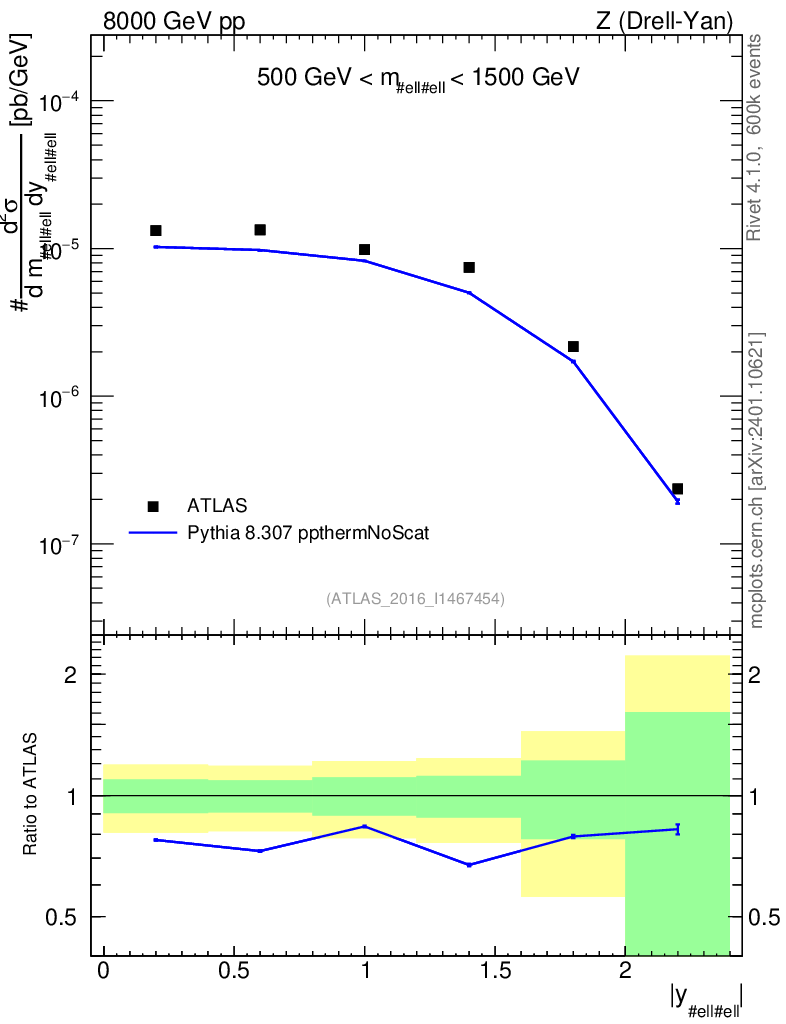Lines: data, pythia8 8.307 ppthermNoScat |