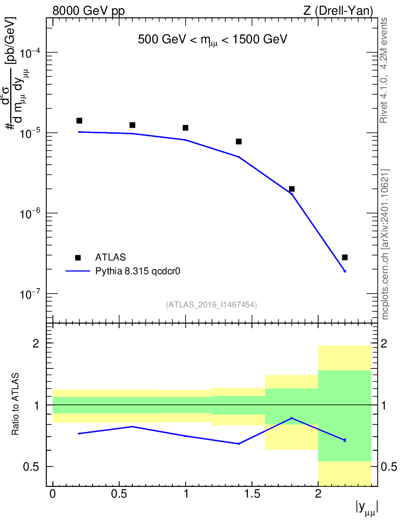 Lines: data, pythia8 8.315 qcdcr0 |