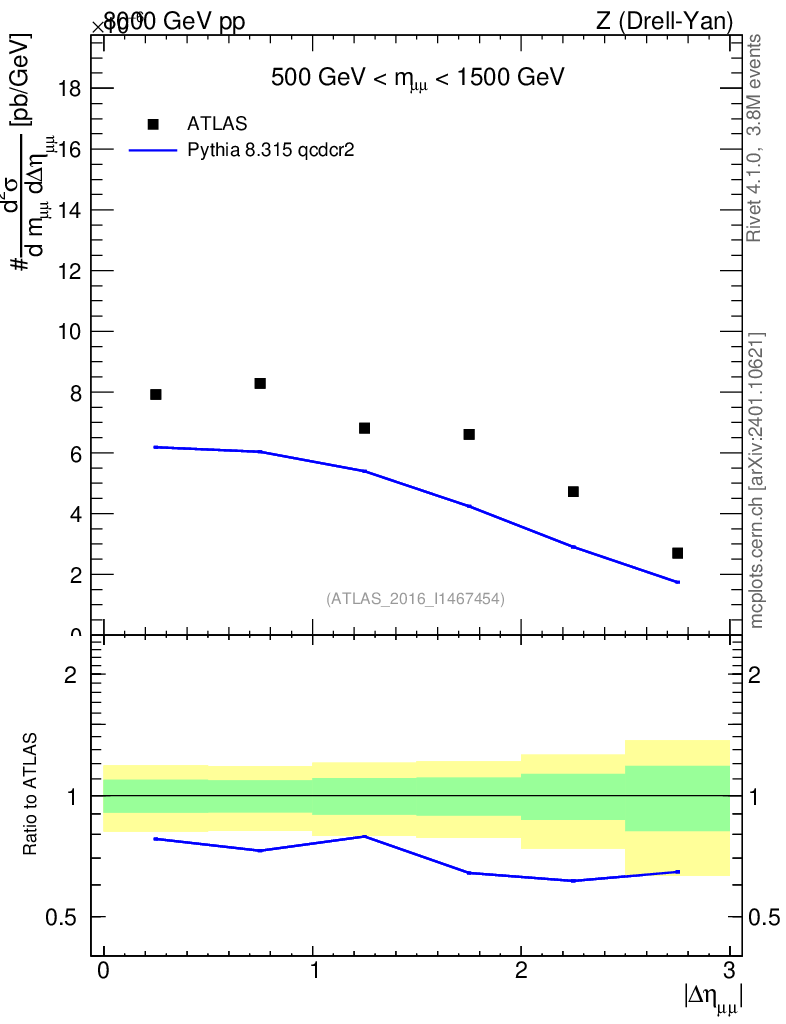 Lines: data, pythia8 8.315 qcdcr2 |