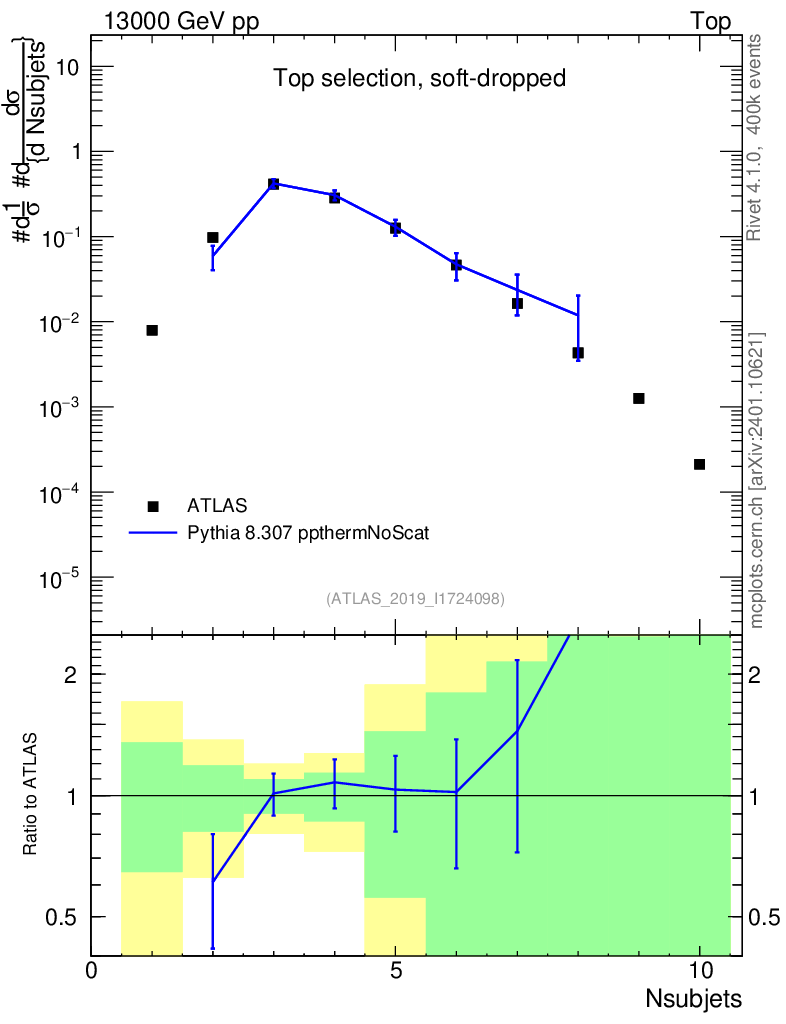Lines: data, pythia8 8.307 ppthermNoScat |