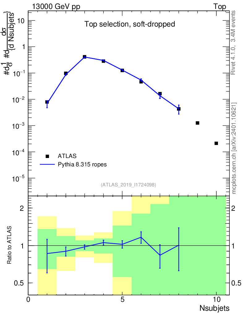 Lines: data, pythia8 8.315 ropes |