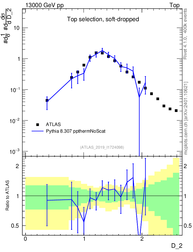 Lines: data, pythia8 8.307 ppthermNoScat |