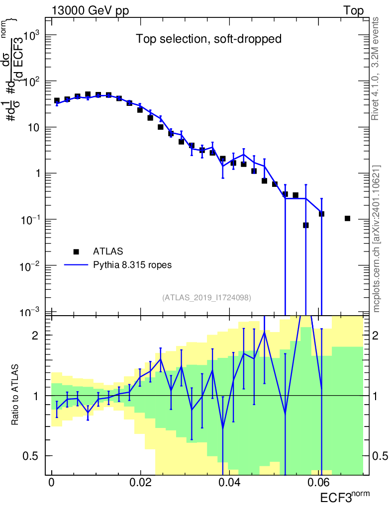 Lines: data, pythia8 8.315 ropes |