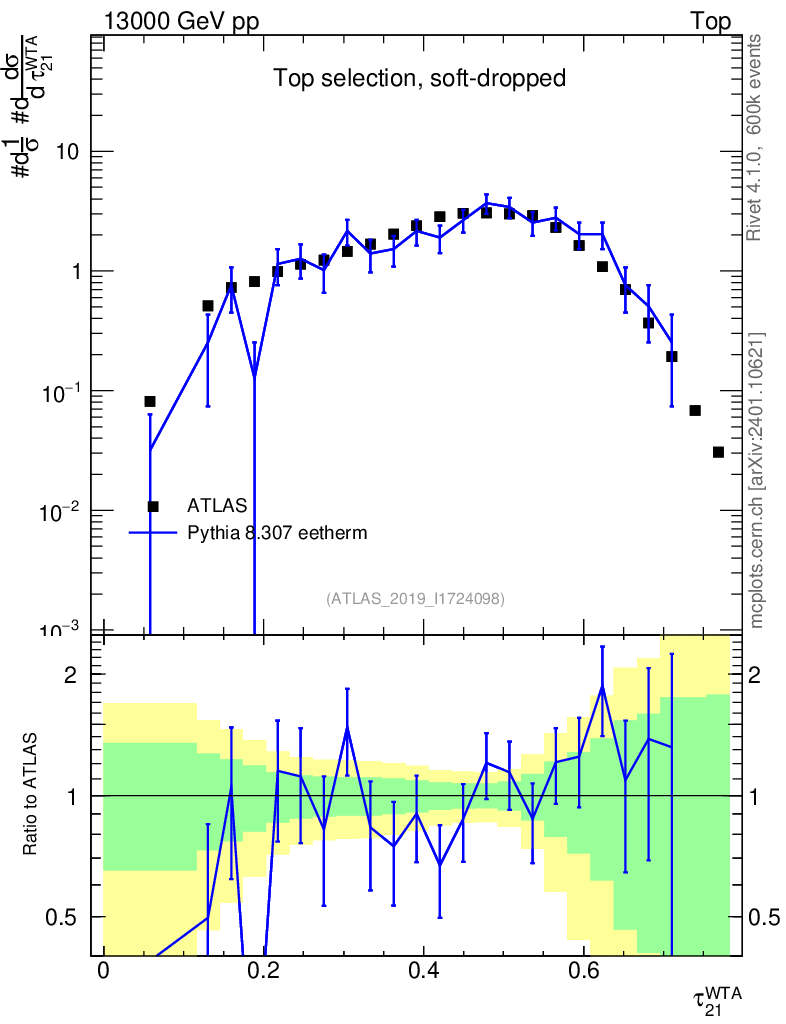 Lines: data, pythia8 8.307 eetherm |