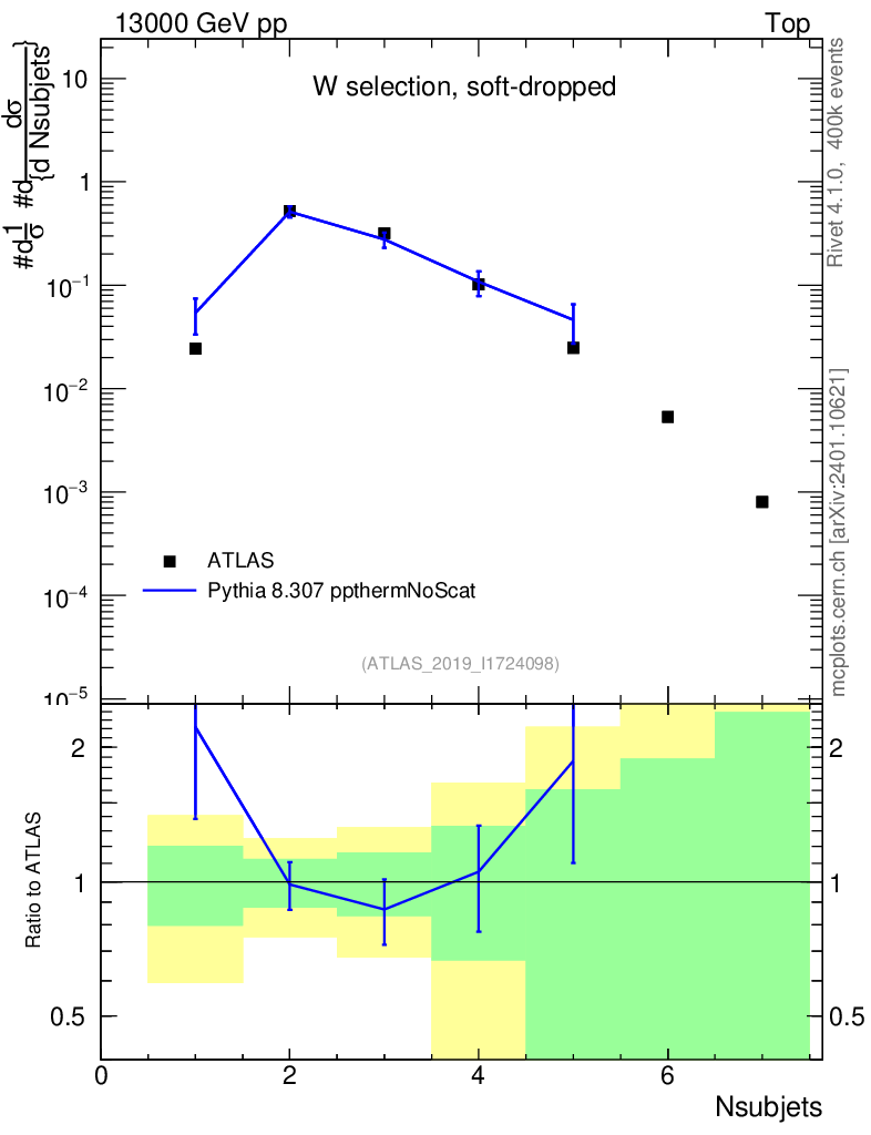 Lines: data, pythia8 8.307 ppthermNoScat |