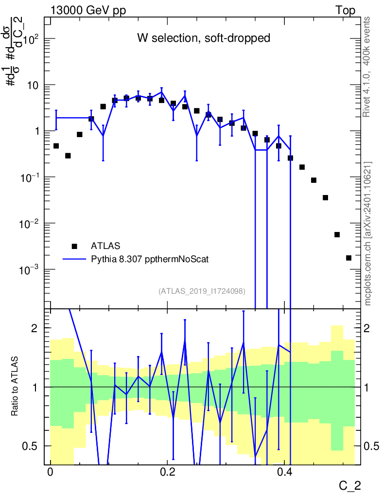 Lines: data, pythia8 8.307 ppthermNoScat |