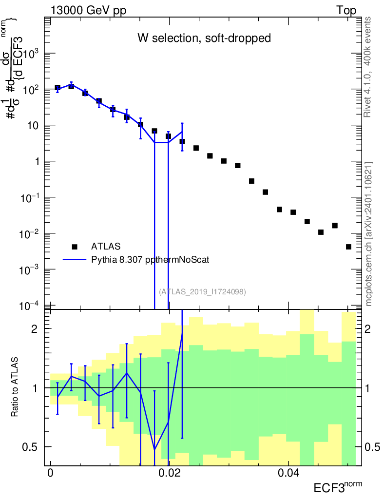 Lines: data, pythia8 8.307 ppthermNoScat |