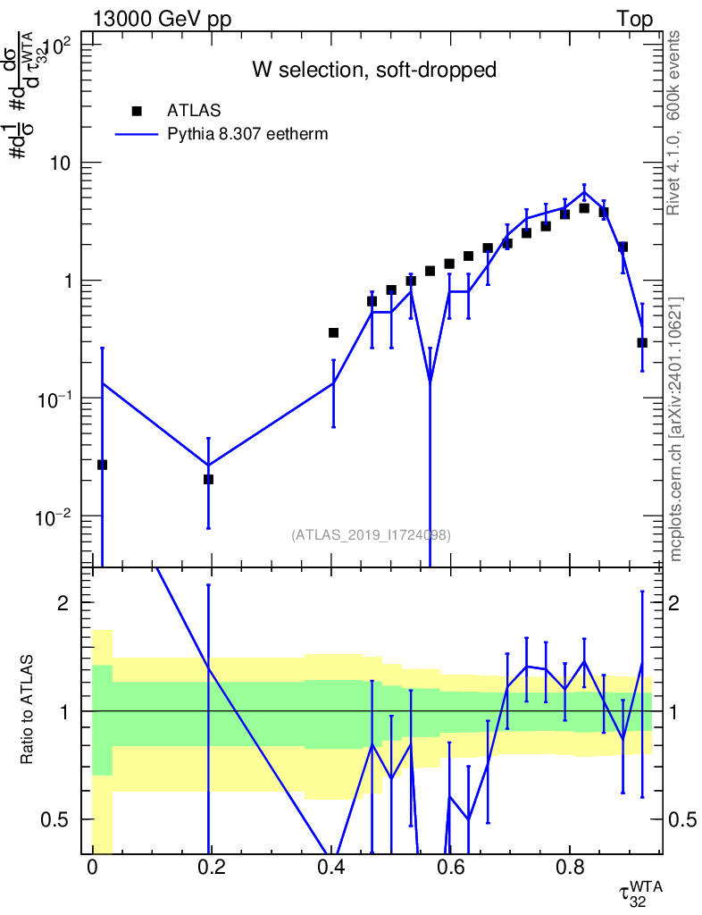 Lines: data, pythia8 8.307 eetherm |