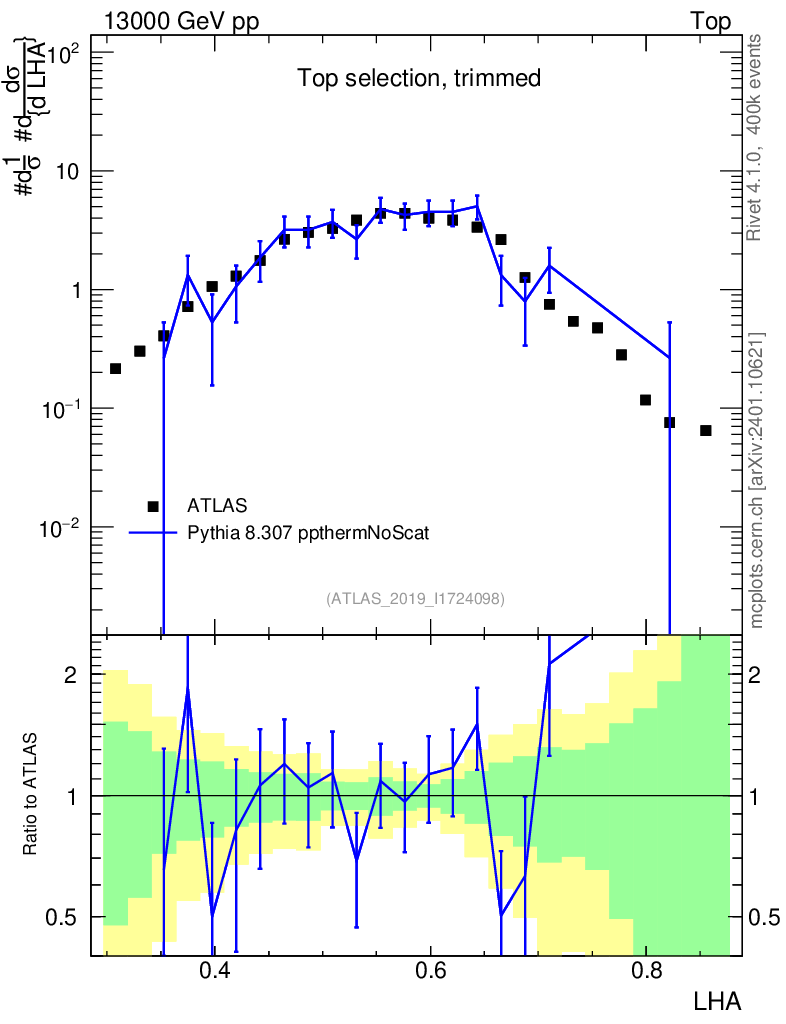 Lines: data, pythia8 8.307 ppthermNoScat |