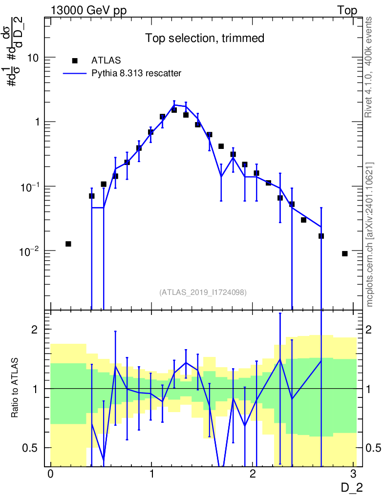 Lines: data, pythia8 8.313 rescatter |