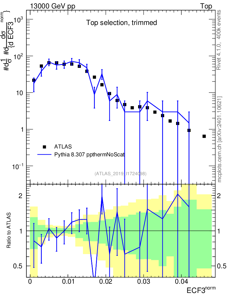 Lines: data, pythia8 8.307 ppthermNoScat |
