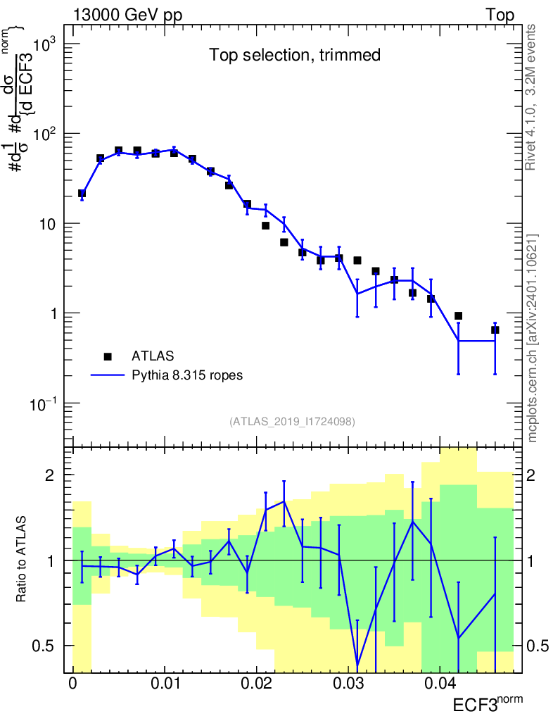 Lines: data, pythia8 8.315 ropes |