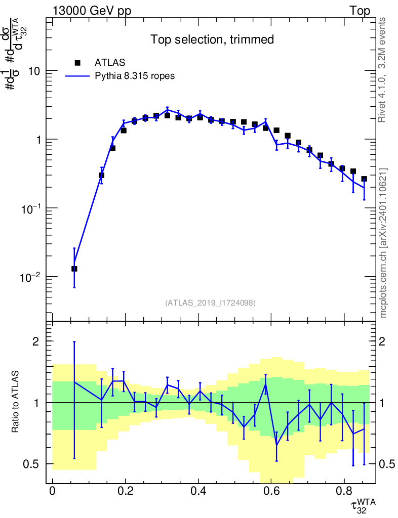 Lines: data, pythia8 8.315 ropes |