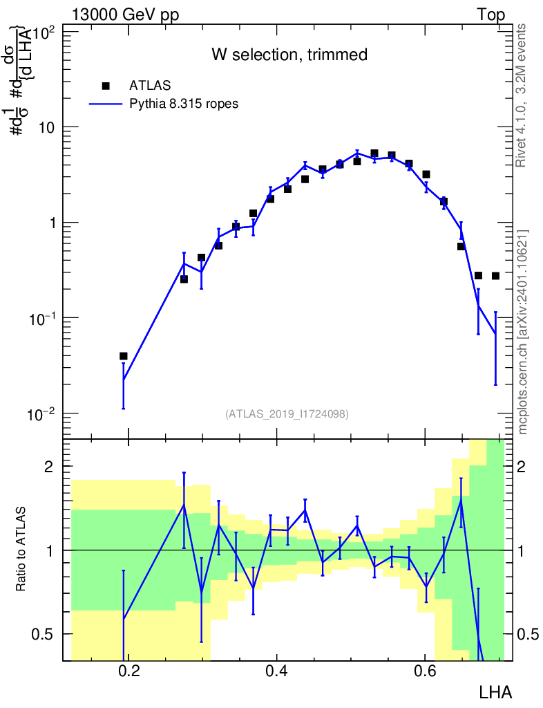 Lines: data, pythia8 8.315 ropes |