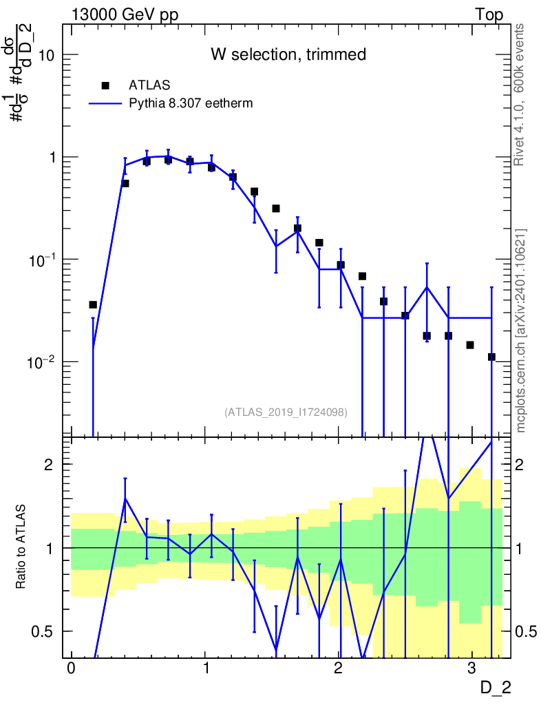 Lines: data, pythia8 8.307 eetherm |