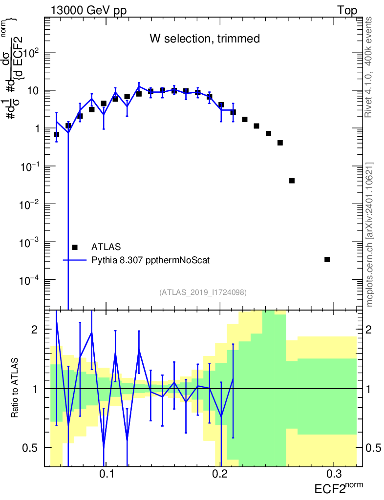 Lines: data, pythia8 8.307 ppthermNoScat |