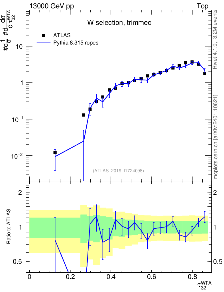 Lines: data, pythia8 8.315 ropes |