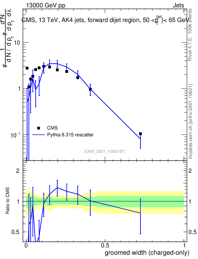 Lines: data, pythia8 8.315 rescatter |