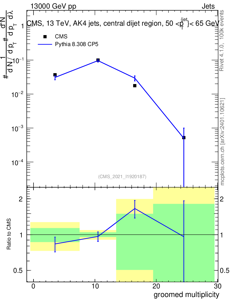 Lines: data, pythia8 8.308 CP5 |