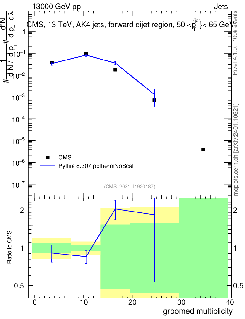 Lines: data, pythia8 8.307 ppthermNoScat |