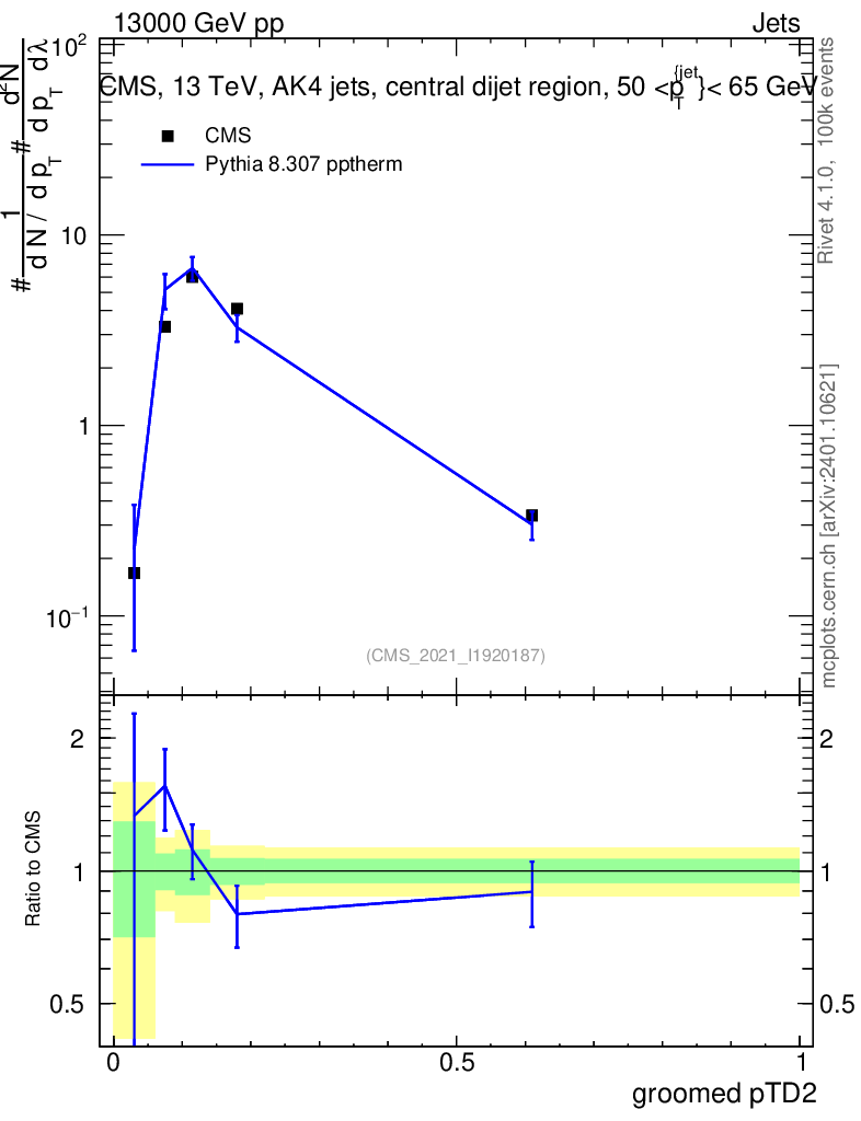 Lines: data, pythia8 8.307 pptherm |