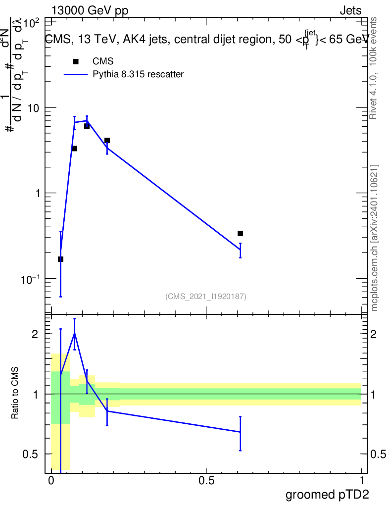 Lines: data, pythia8 8.315 rescatter |