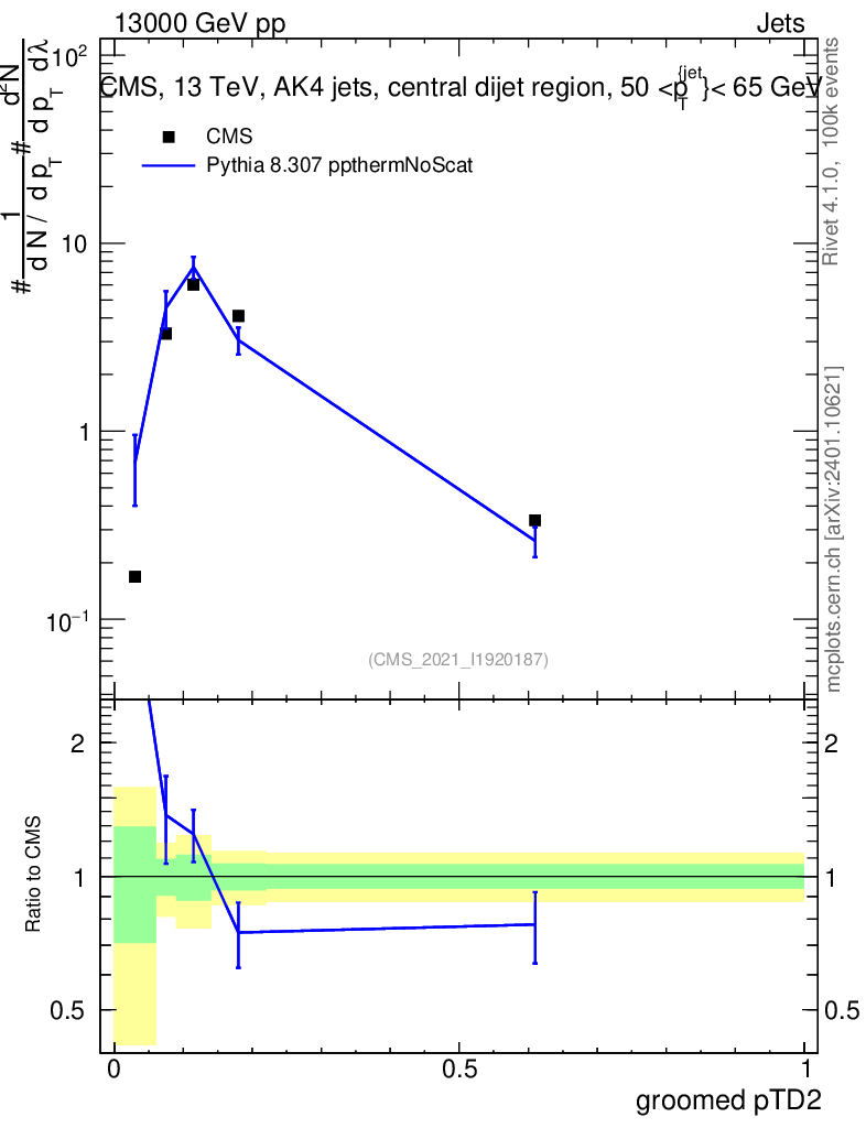 Lines: data, pythia8 8.307 ppthermNoScat |