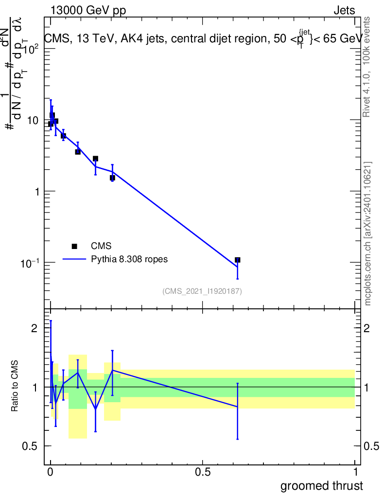 Lines: data, pythia8 8.308 ropes |