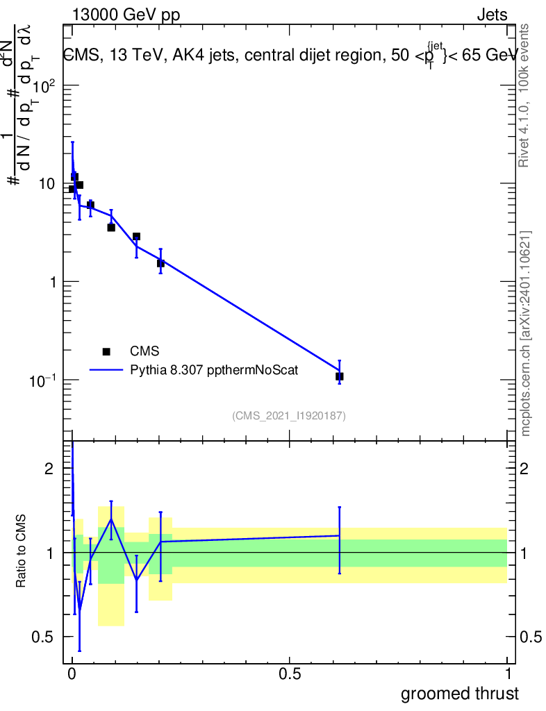 Lines: data, pythia8 8.307 ppthermNoScat |