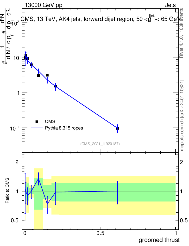 Lines: data, pythia8 8.315 ropes |