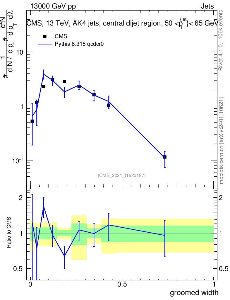 Lines: data, pythia8 8.315 qcdcr0 |