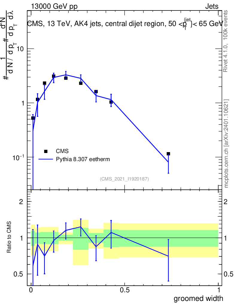 Lines: data, pythia8 8.307 eetherm |