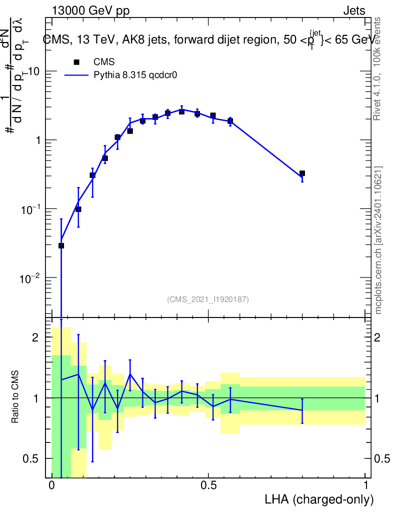 Lines: data, pythia8 8.315 qcdcr0 |